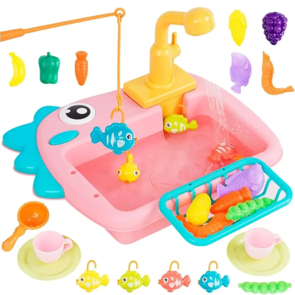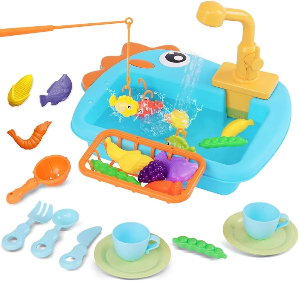 - Kitchen Sink Toys Pretend Kitchen Toys for Kids with Tableware Accessories Vegetable Fruit Fishing Games for Toddlers Kids Kitchen Play Set with Running Water Gift for Girls and Boys